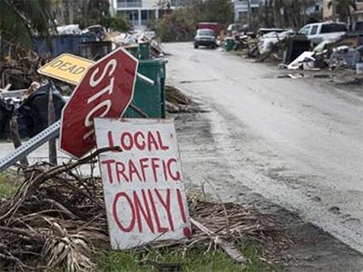 | Debris and damage from Hurricane Irma is visible in this neighborhood street in the village of Goodland, located on the tip of Marco Island. Photo by UMNS. |